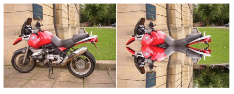 Car designers at General Motors Research Labs only sculpt half of a car out of clay and then use a vertical mirror to reflect that half to see the whole car. What if we want to see what a picture would look like if we placed a mirror on a vertical line in the center of the width of the picture to reflect the left side (Figure 1)?