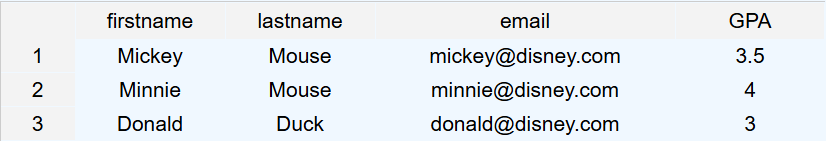A data set is a collection of specific pieces of information or data. For example, the following table is a data set that keeps track of information about students. Data can be represented in a diagram by using a chart or table. Here it is shown as a spreadsheet table with columns for the first name, last name, email, and GPA. Spreadsheet software like Excel and Google Sheets store data in a table and provide functions to manipulate and calculate with the data.