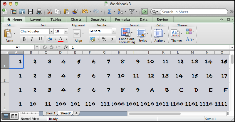 Most of the work we do in this book will be in decimal, but more complex work with data often requires understanding hexadecimal and being able to know how a hexadecimal number, like 0xA3, translates into a bit pattern. We don’t need that right now, though. If you are interested, you might try searching online for "binary conversion tutorial" and you will find lots of useful sites.