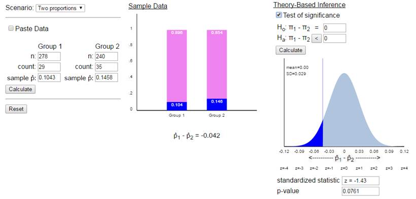 An advantage to using the z-procedures is being able to easily produce a confidence interval for the parameter. Use technology to determine a 95% confidence interval for the parameter of interest, and then interpret this interval.