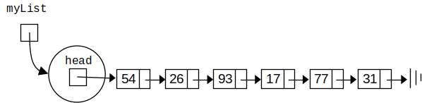 It is important to note that the location of the first item of the list must be explicitly specified. Once we know where the first item is, the first item can tell us where the second is, and so on. The external reference is often referred to as the head of the list. Similarly, the last item needs to know that there is no next item.
