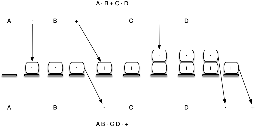 | A + B · C + D | + + A · B C D | A B C · + D + |