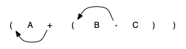 | A + B · C | + A · B C | A B C · + |