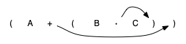 Let’s interpret the troublesome expression A + B · C using operator precedence. B and C are multiplied first, and A is then added to that result. (A + B) · C would force the addition of A and B to be done first before the multiplication. In the expression A + B + C, by precedence (via associativity), the leftmost + would be done first.