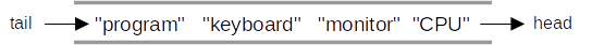 There are many ways to refer to the removal and addition points of a queue: “front and rear”; “front and back”; and “head and tail”. We will use the “head/tail” terminology in this book.