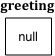 The code above declares an object variable named greeting and sets the value of greeting to the Java keyword null to show that it doesn’t refer to any object yet. So System.out.println(greeting); will print null.