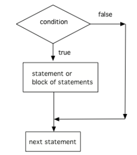 The statements in a Java main method normally run or execute one at a time in the order they are found from top to bottom. If statements (also called conditionals or selection) change the flow of control through the program so that some code is only run when something is true. In an if statement, if the condition is true then the next statement or a block of statements will execute. If the condition is false then the next statement or block of statements is skipped.